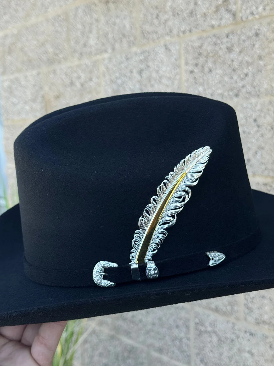 • Hebilla de tres piezas de oro de 10 quilates en la banda del sombrero